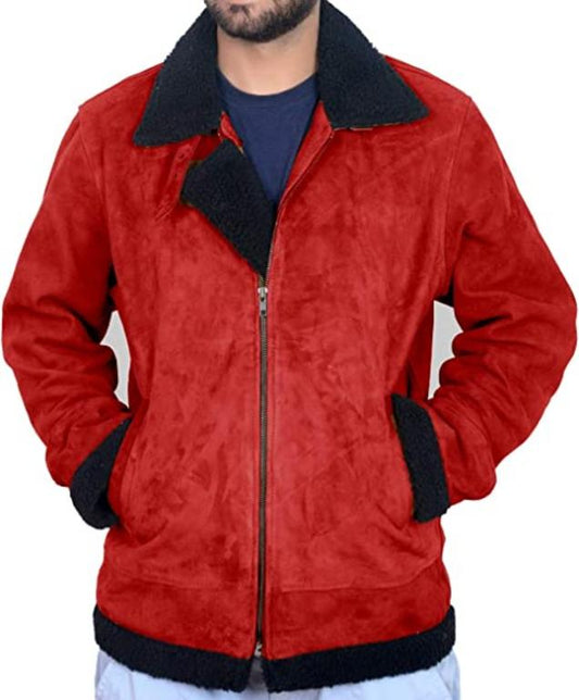 CoolHides Men's Fashion Suede Leather Bomber Jacket