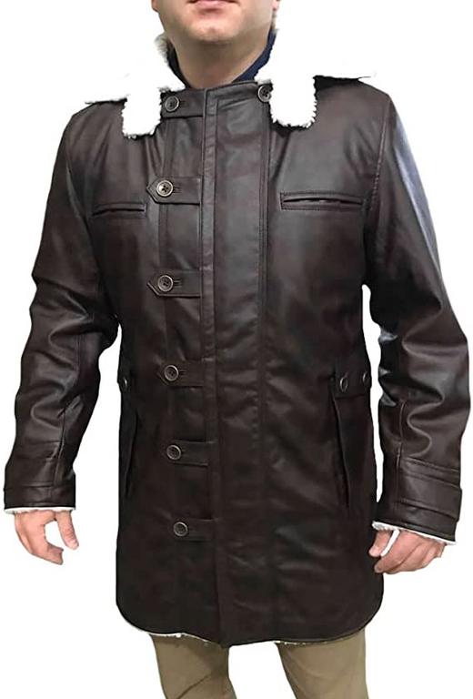 CoolHides Men's Fashion Furr Collar Buttoned Leather Coat