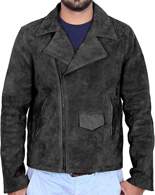 CoolHides en's Fashion Brando Style Suede Leather Biker Jacket