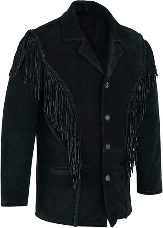 CoolHides Men's Western Stylish Suede Leather Jacket Fringed