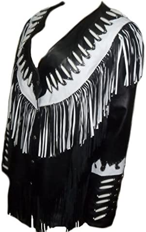 CoolHides Women's Western Real Leather Jacket With Beads and Fringes