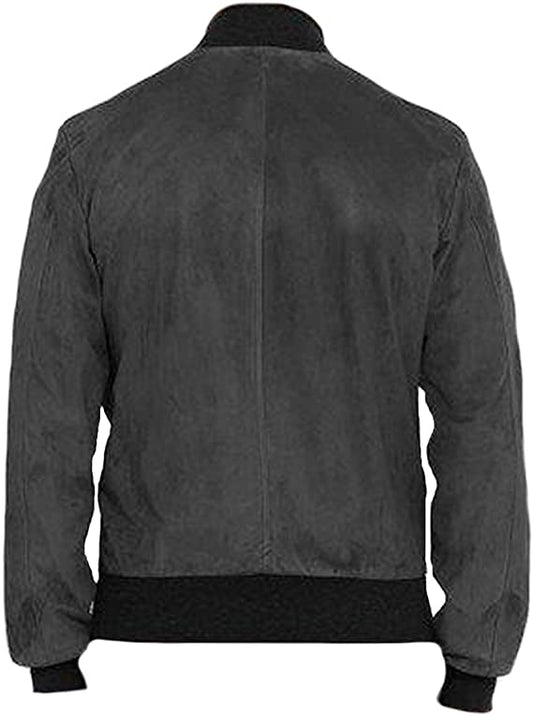 CoolHides Men's Fashion Bomber Grey Suede Leather Jacket