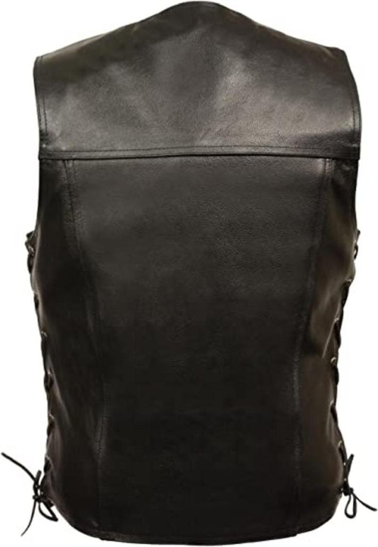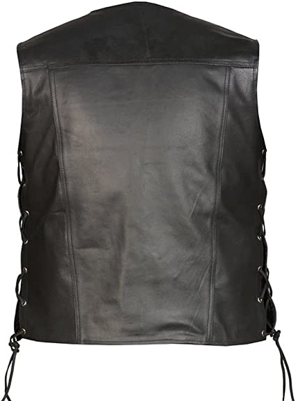 CoolHides Men's Fashion Snap Side Lace Real Leather Vest