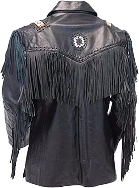 CoolHides Men's Fashion Western Genuine Cowboy Jacket Native American Wears Fringed & Beaded Jacket Cow Leather Beige